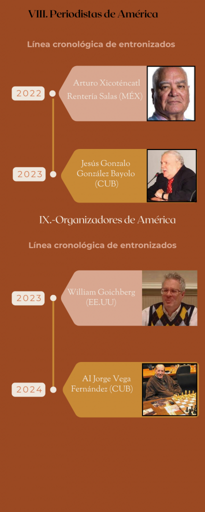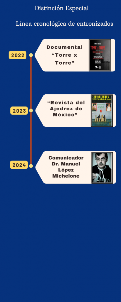 Tienes el interés de conocer, más, tener más detalle de los entronizados, pueden adquirir los libros del salón de la fama. El libro 2 grandes del ajedrez mexicano estará disponible para principios de mayo, y abarca la 2da y la tercera entronización.